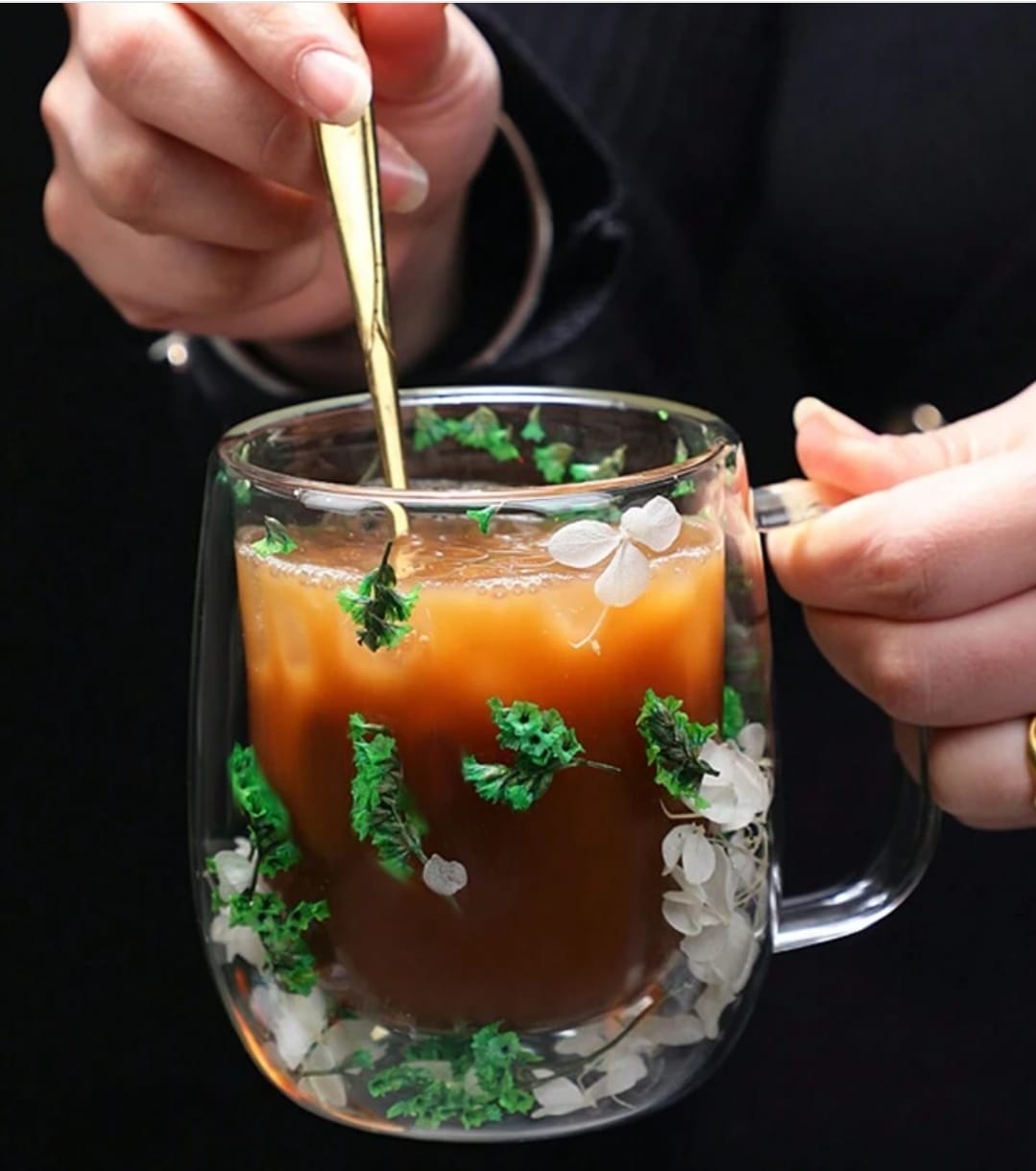 Double Wall Glass Flower Mug YJA 350ml